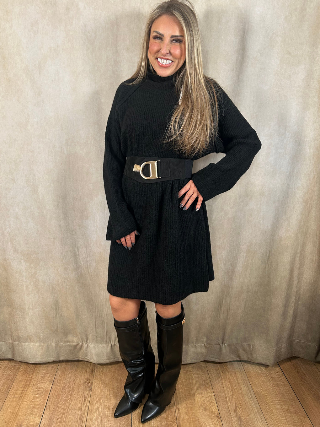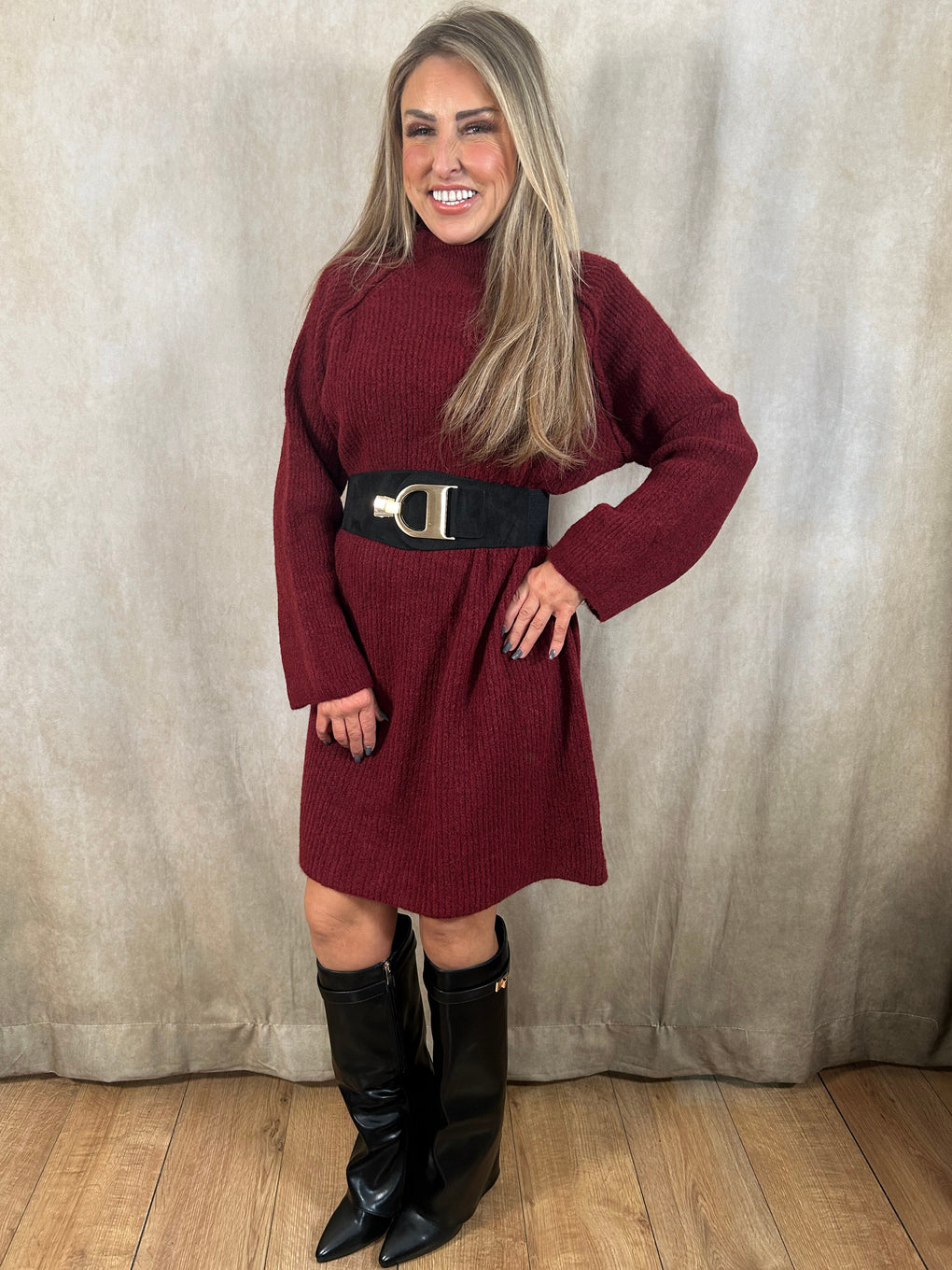 Cosy and chic, the Jennifer Jumper Dress is a knee-length winter knit crafted in Italy from a blend of polyacrylic, polyamide, wool, and viscose. Featuring long sleeves, this versatile dress can be styled with a belt for a standout look. Available in mocha, chocolate, grey, black, oatmeal, cream, and burgundy, it fits sizes 8–18. Priced at £39.99.