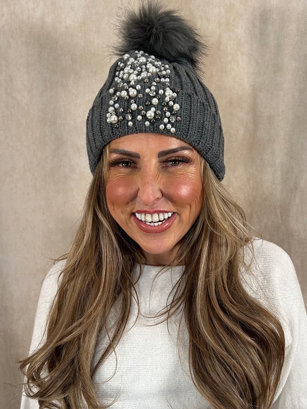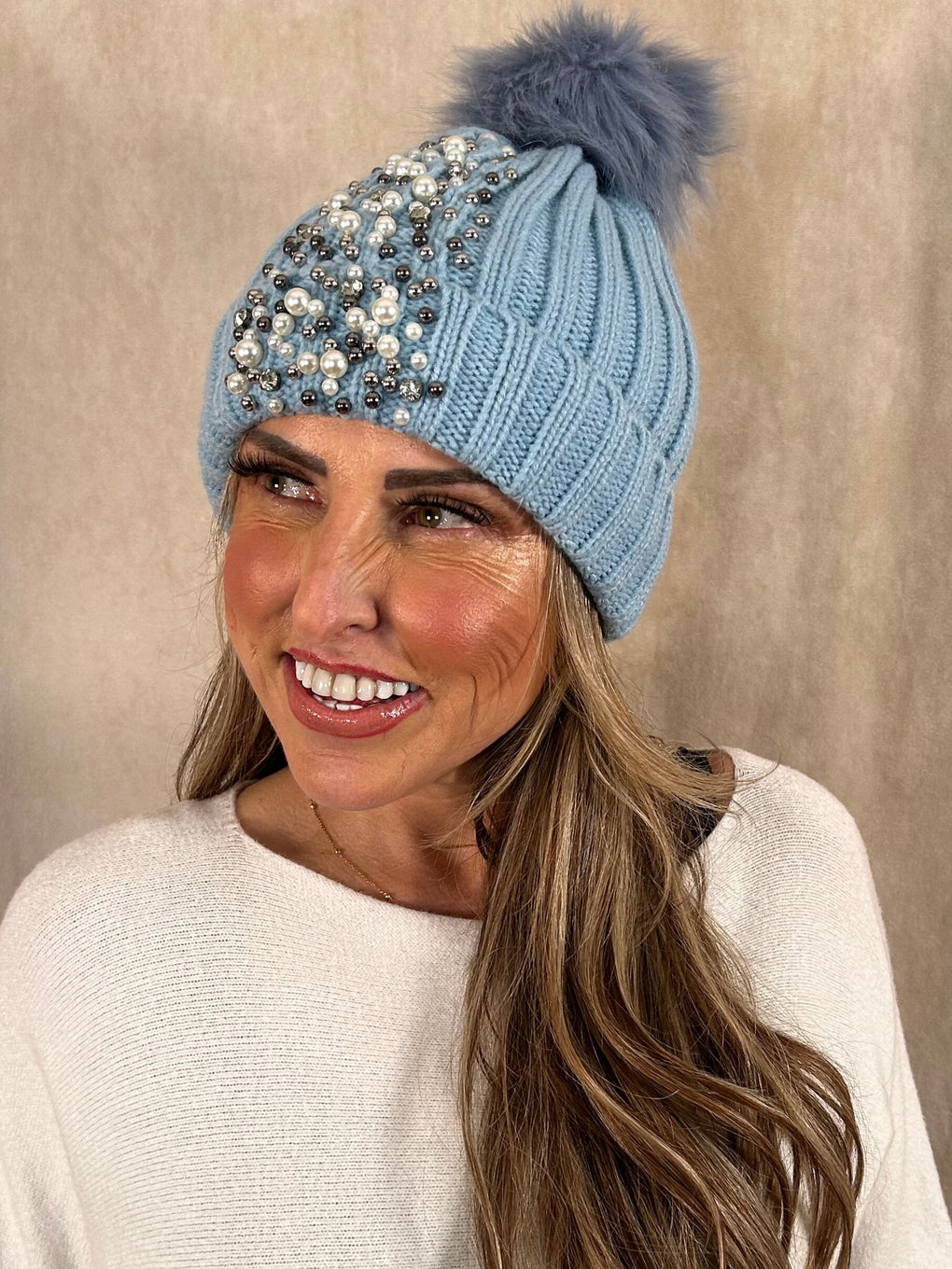 Pearl and Bead Bobble Hat 3