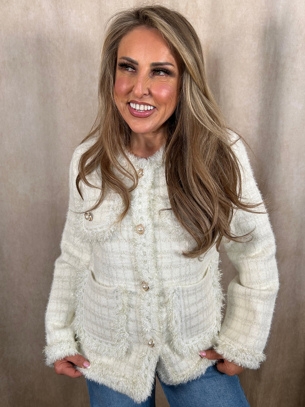 Add a touch of chic to your everyday look with the Anita Jacket. Designed in a soft textured fabric with elegant button detailing, it’s perfect for layering over casual or dressed-up outfits. A flattering, easy-to-wear style that brings polish without effort.