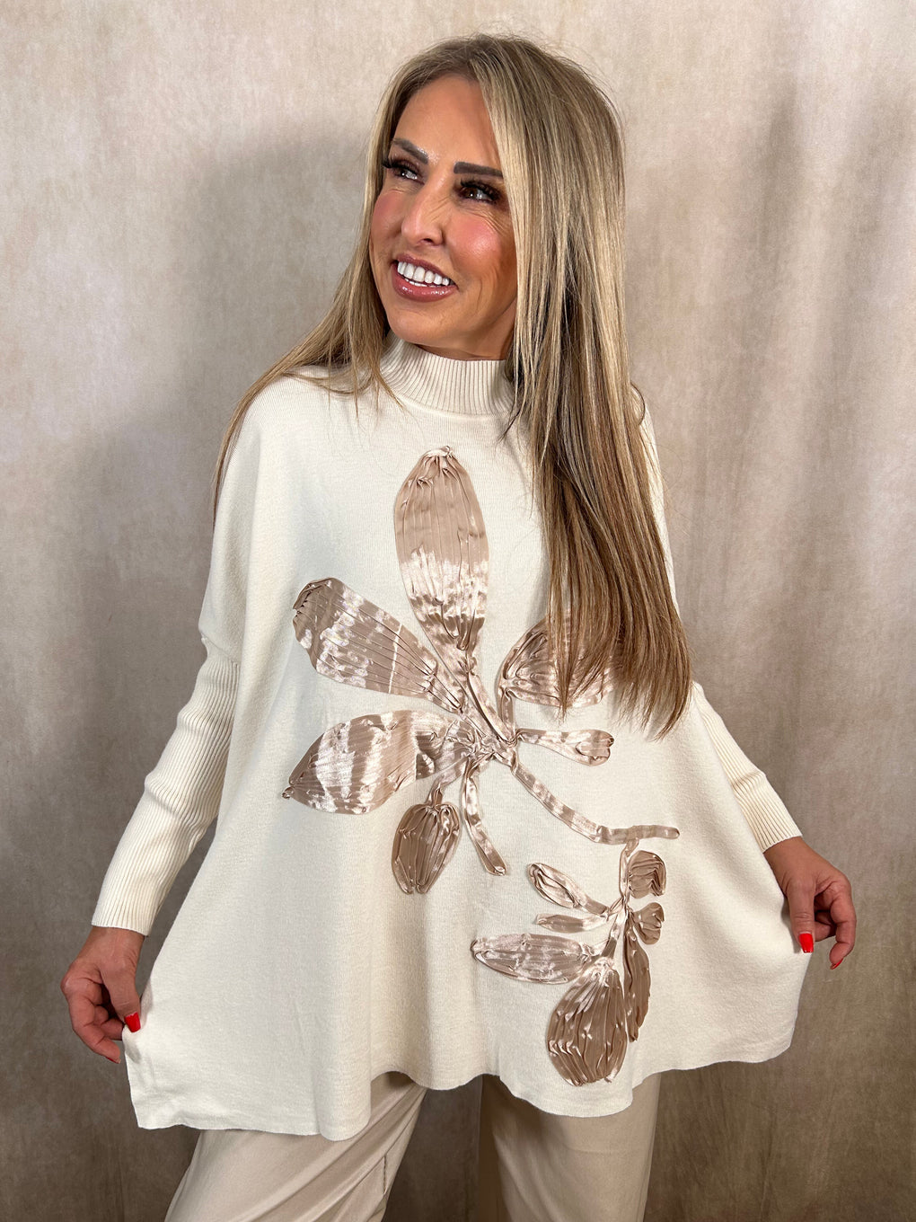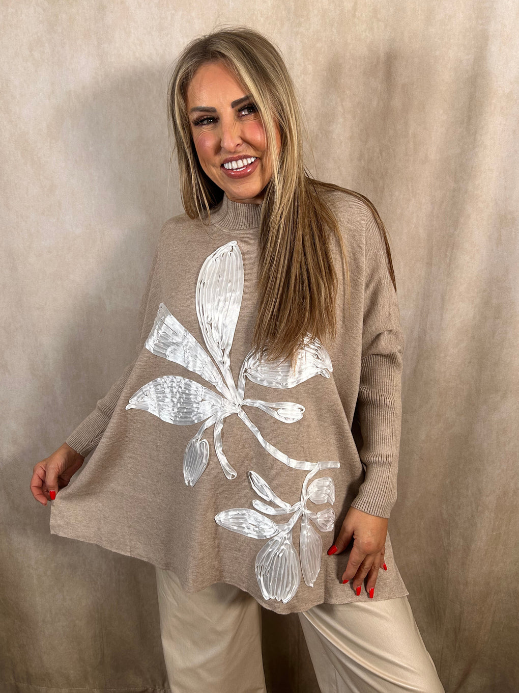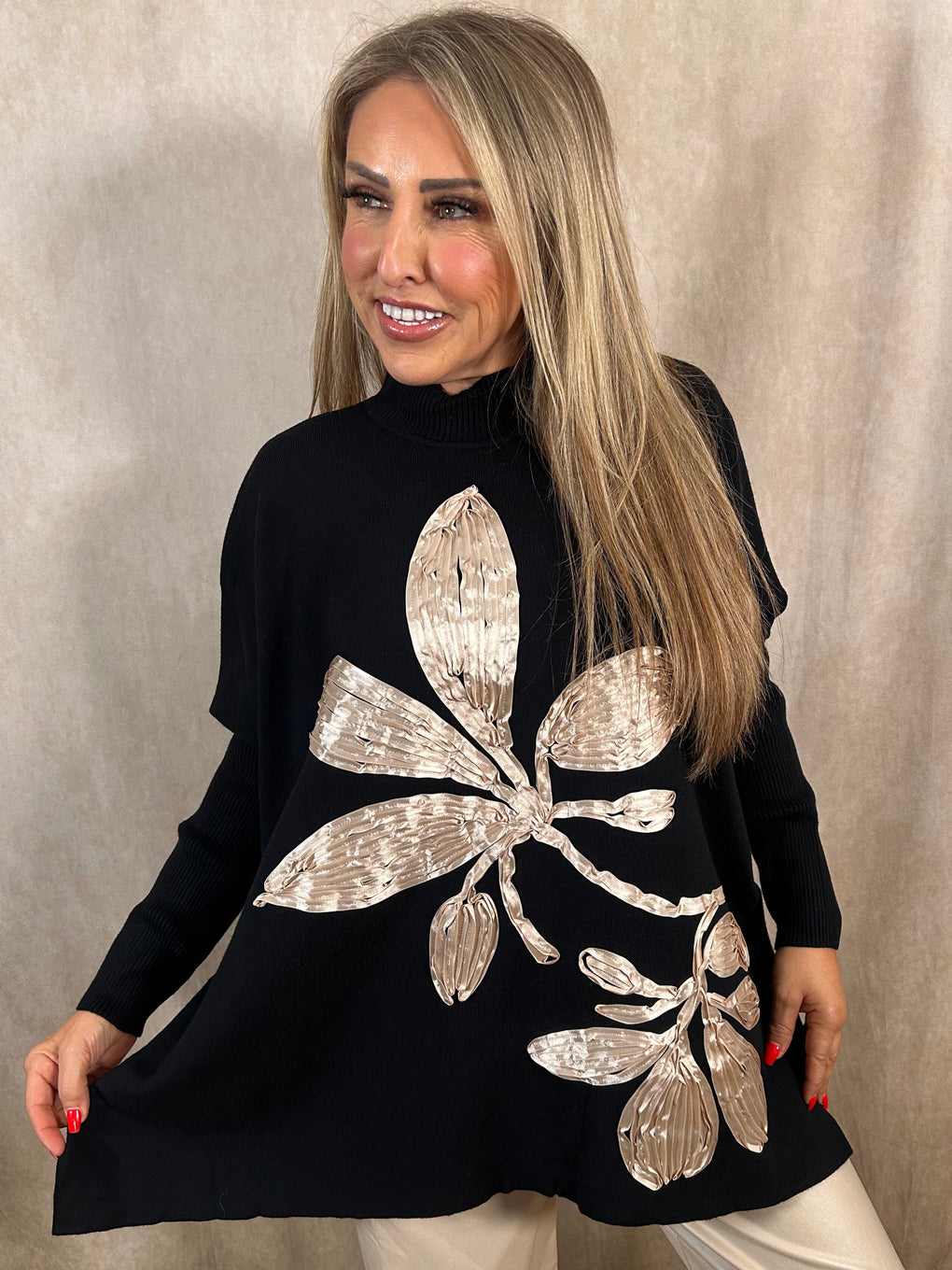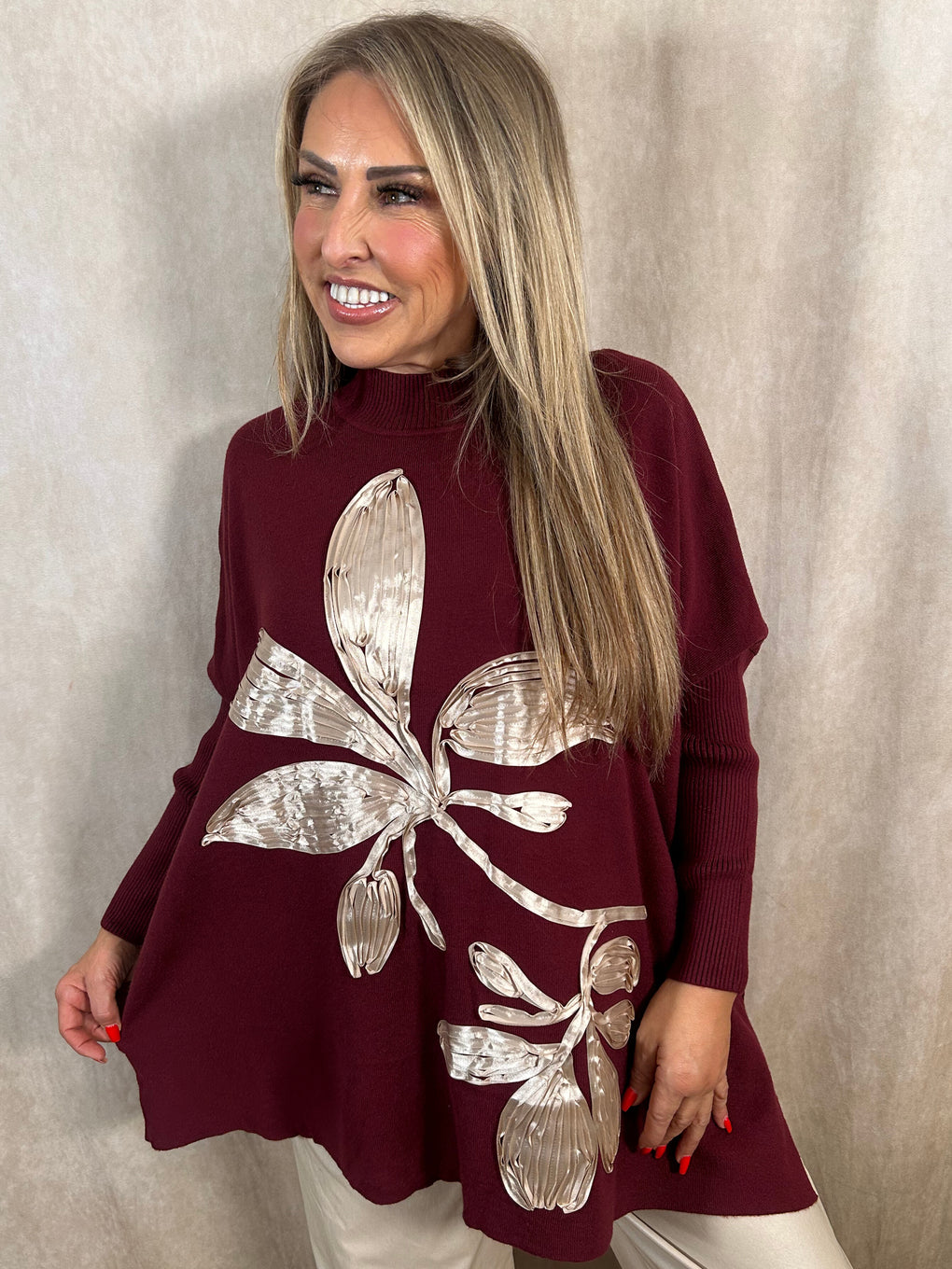 The Lily Jumper is where comfort meets effortless elegance. Made in a soft blend of viscose, polyester, and nylon, it features a relaxed fit with a statement metallic floral design for a touch of sophistication. Designed in one size (8–20) for a flattering drape on every figure. Available in six versatile shades: black, cream, burgundy, brown, grey, and beige.