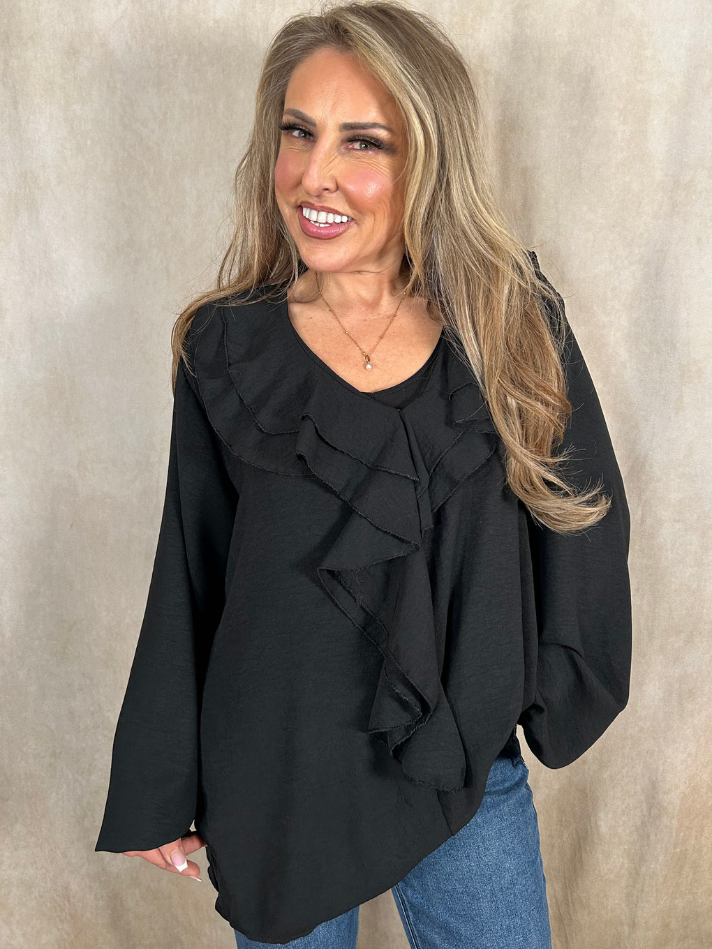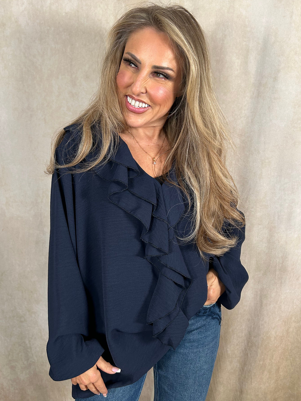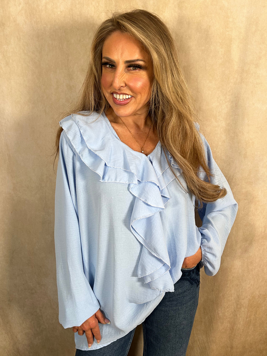 Add a touch of elegance to your wardrobe with the Francesca Frill Blouse – a feminine, Italian-made piece featuring delicate ruffle detailing and a flattering drape. Crafted from lightweight polyester, this one-size blouse fits UK sizes 8–16 comfortably and comes in four timeless shades: Navy, Beige, Light Blue and Black. £19.99.