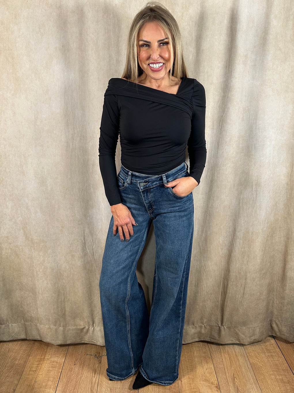 Turn heads with the stunning Bronwyn Bodysuit, available in S/M (8–10) and M/L (10–12) and in rich shades of wine, brown, or black. Crafted from a smooth blend of polyamide and spandex, this long-sleeved bodysuit features an eye-catching asymmetric neckline and elegant ruched detailing. A truly unique piece that adds effortless sophistication to any outfit.