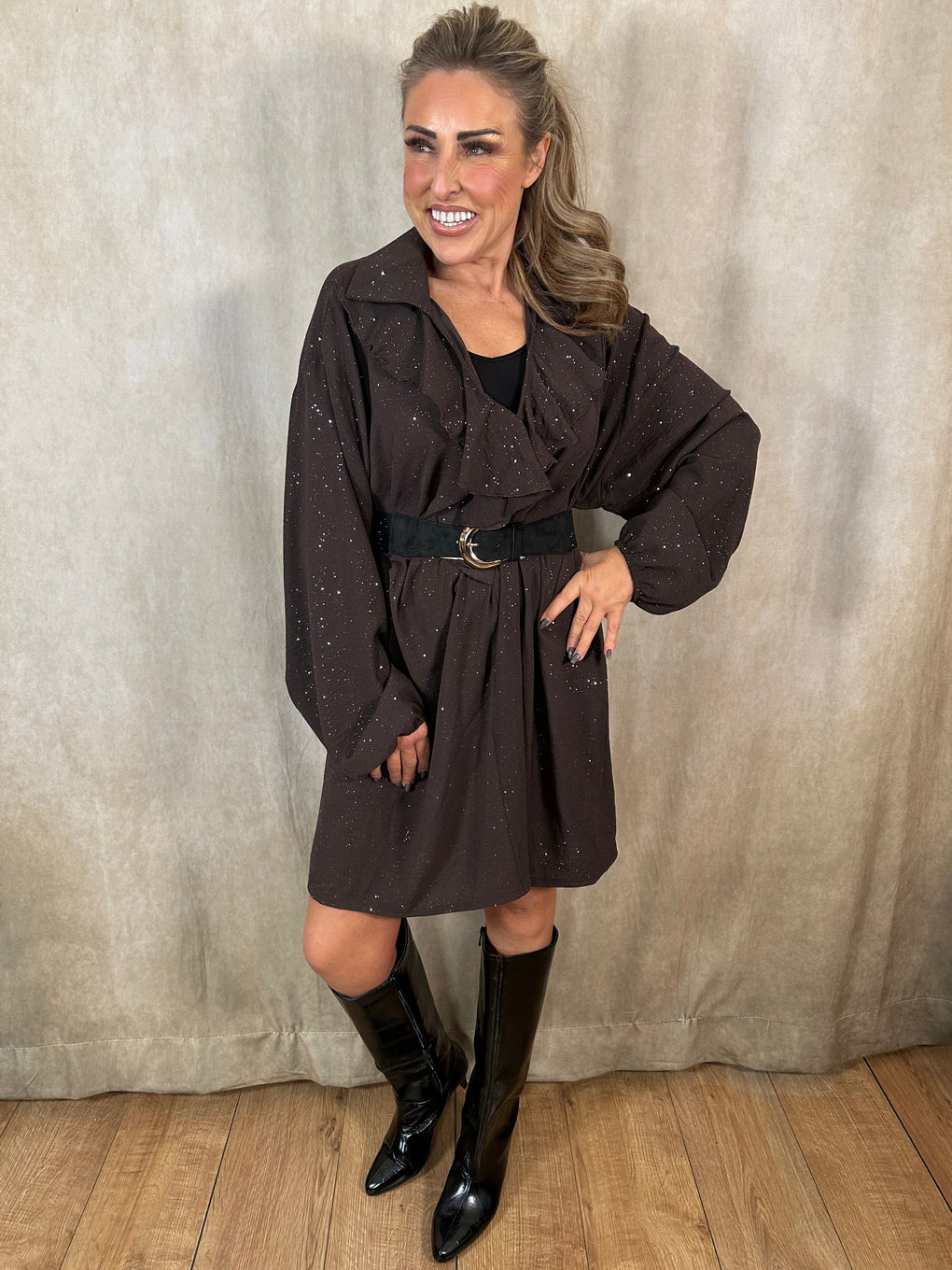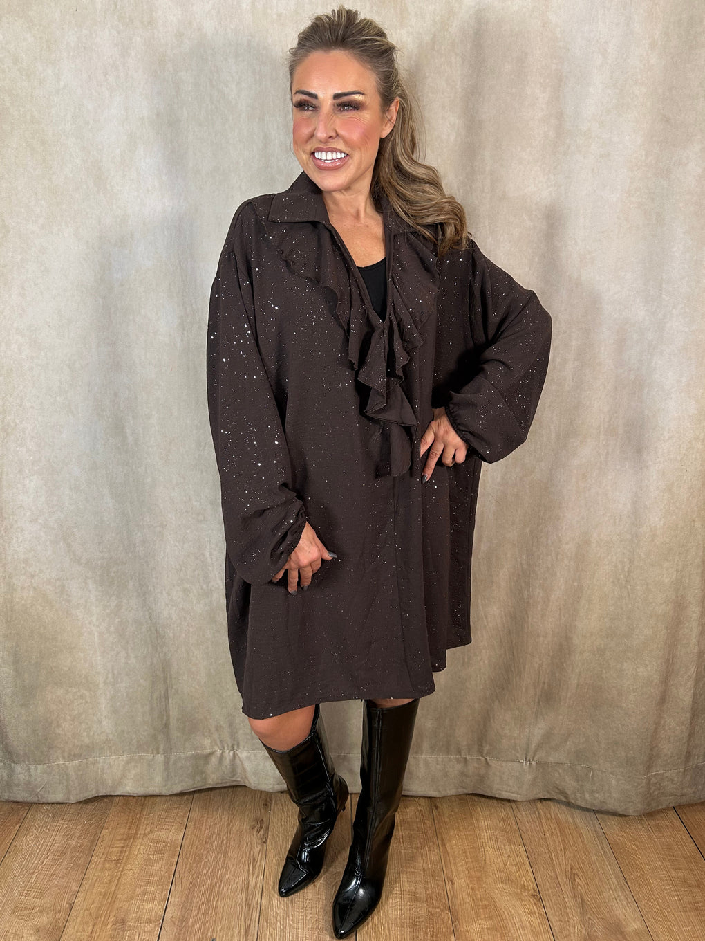 The Lorraine Frill Dress brings effortless elegance to your wardrobe with its flowing silhouette and soft, comfortable blend of polyester, viscose and elastane. Fitting sizes 8–20, this versatile design features a charming frilled neckline, relaxed sleeves and a flattering drape that can be worn loose or belted for definition. Available in Navy, Chocolate, Black or Burgundy, it’s the perfect day-to-evening piece for any season.