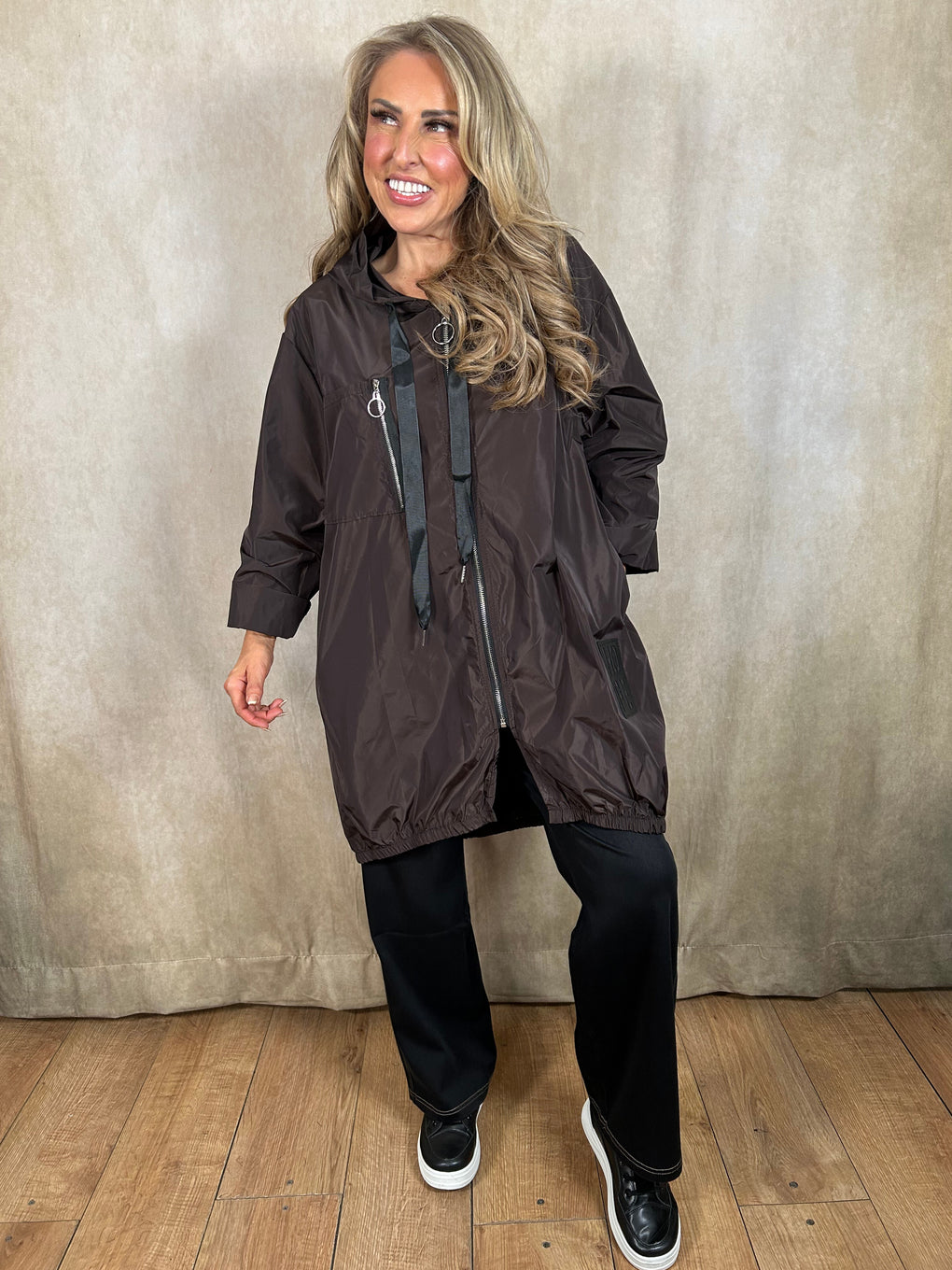 Stay stylish whatever the weather with our Misty Mac Jacket. Designed in Italy and made from lightweight, durable polyester, this oversized mac fits UK sizes 8 to 18 comfortably. Featuring a zip front, contrast drawstrings, and handy pockets, it’s perfect for layering. Finished with a bold "HOPE" patch detail, it brings an edge to your everyday outerwear.