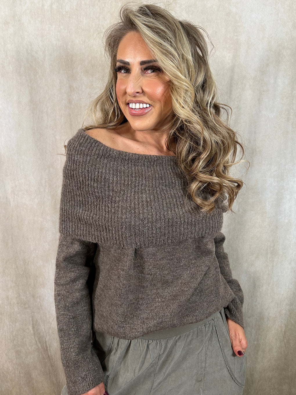 Stay cosy and chic with the Oakley Off The Shoulder Jumper, crafted from a soft blend of acrylic, polyamide, polyester, wool, and viscose. Featuring long sleeves and a wide fold-over neckline for a stylish off-the-shoulder look, it flatters sizes 8–16. Available in Brown, Khaki, Mocha, Black, Cream, and Burgundy.