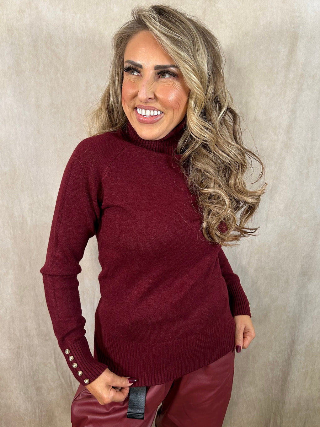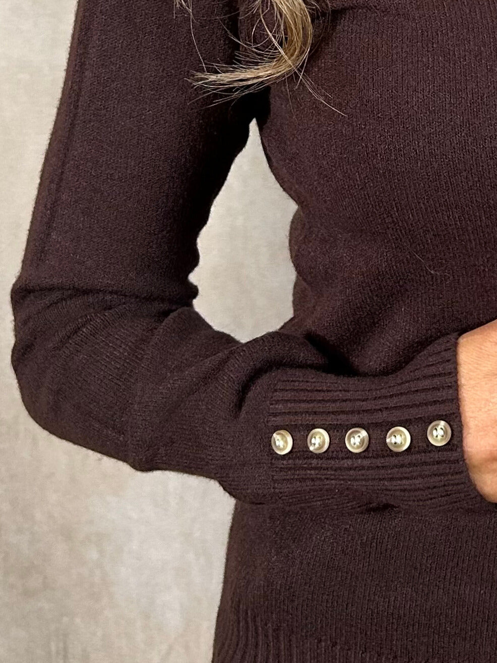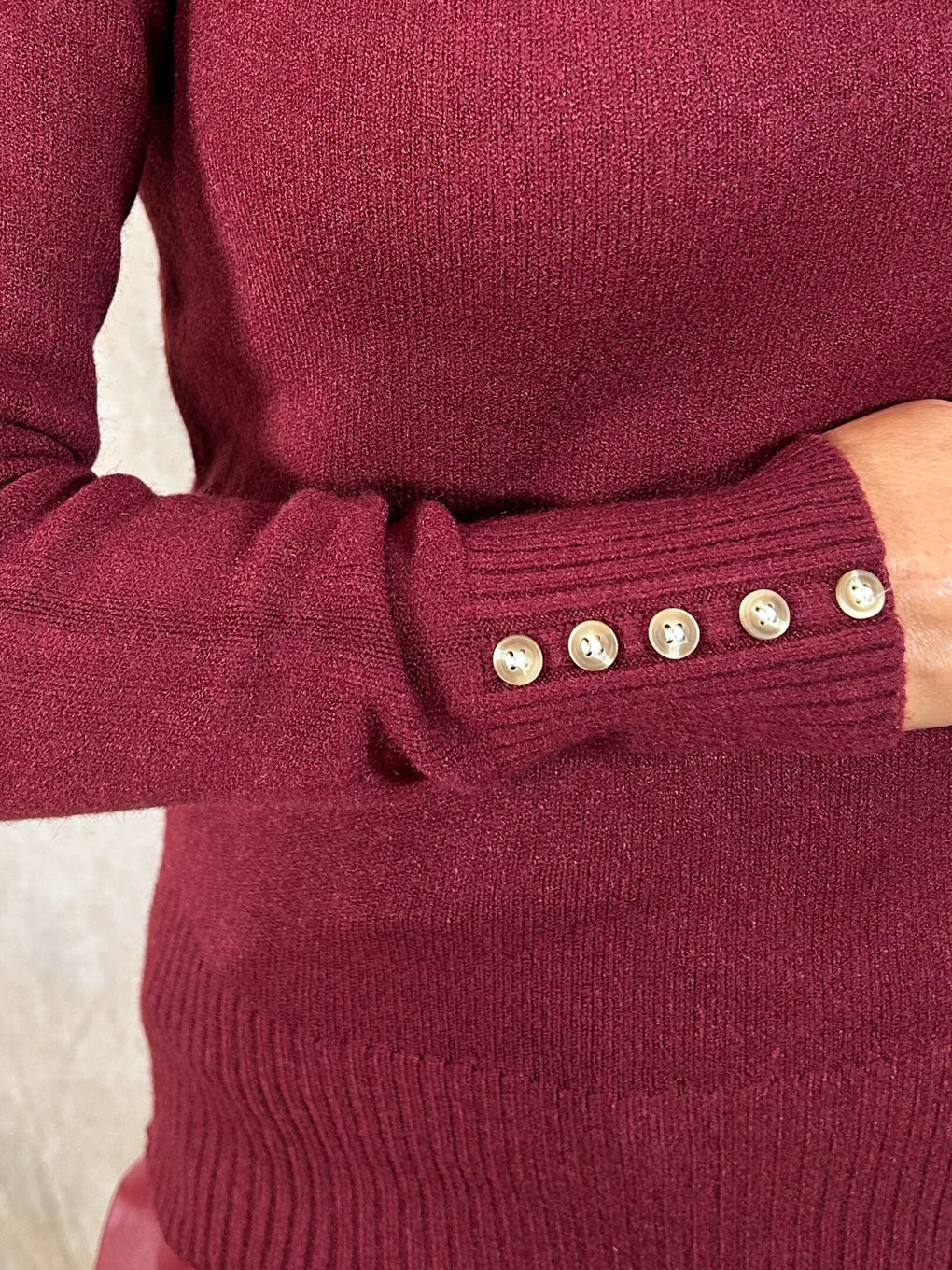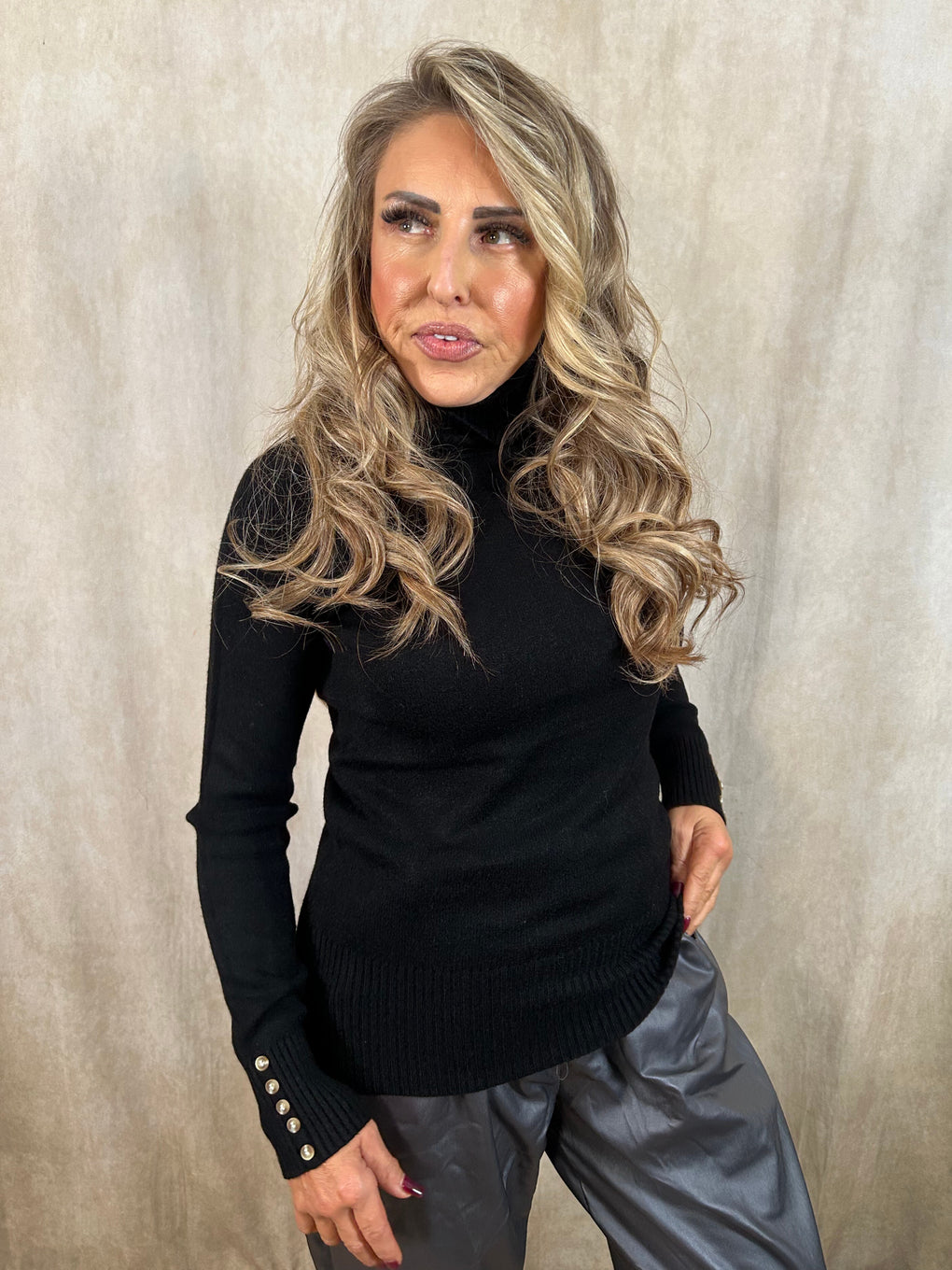 Effortlessly stylish, the Pauline Polo Neck Jumper is made from a soft blend of viscose, polyamide, and polyester. Featuring long sleeves with rib detailing and elegant gold buttons on the cuffs, it offers a flattering fit for sizes 8–16. Available in Black, White, Mocha, Beige, Burgundy, Navy, and Chocolate.
