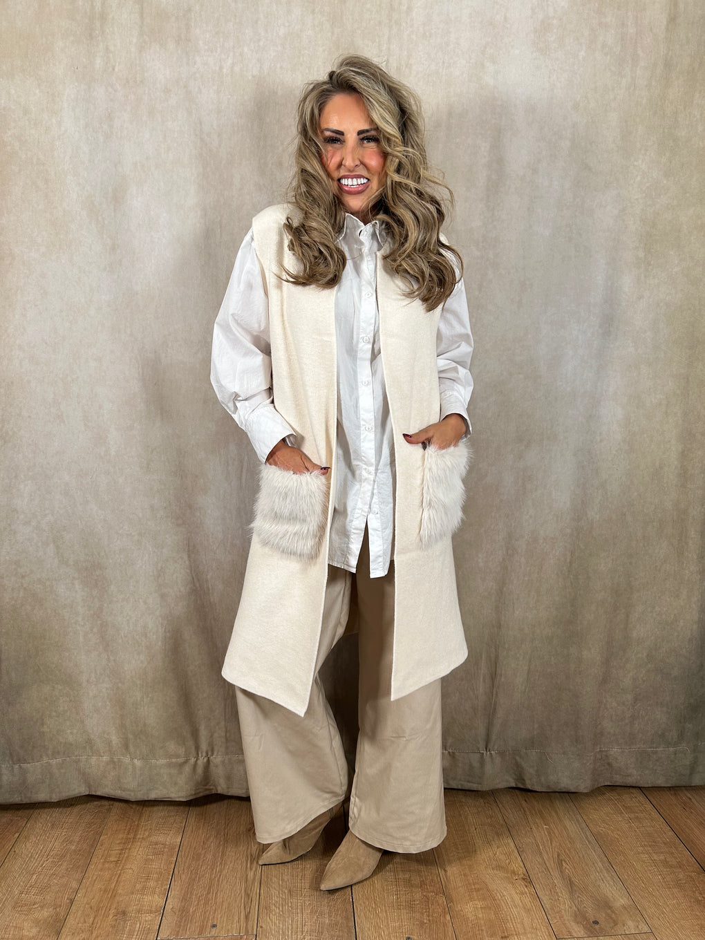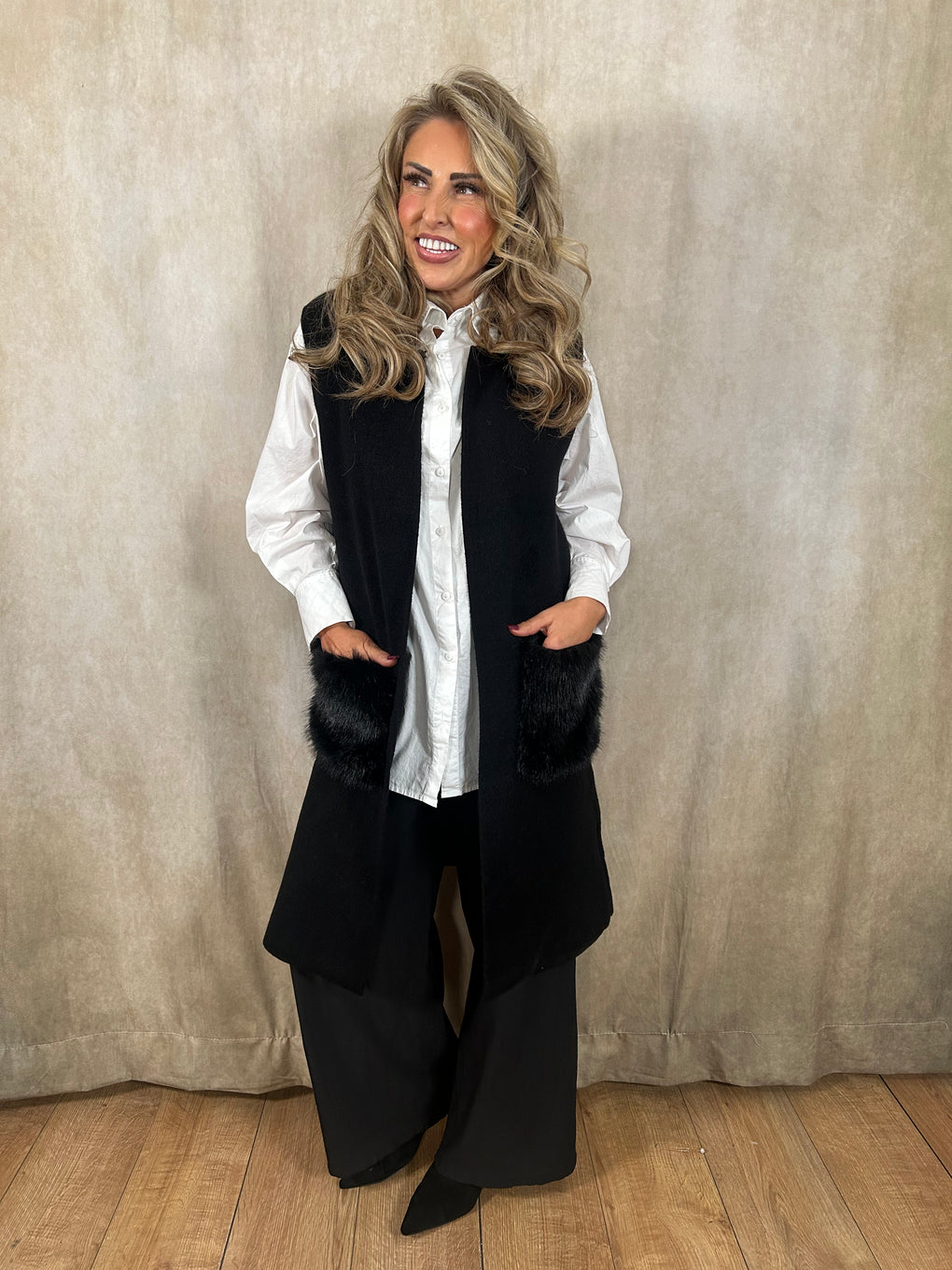 Elevate your winter style with the luxurious Thelma Fur Pocket Waistcoat. Made in Italy from soft, high-quality faux fur, this longline design features practical side pockets and a flattering, easy-to-layer fit. A timeless piece that adds warmth and elegance to any outfit.